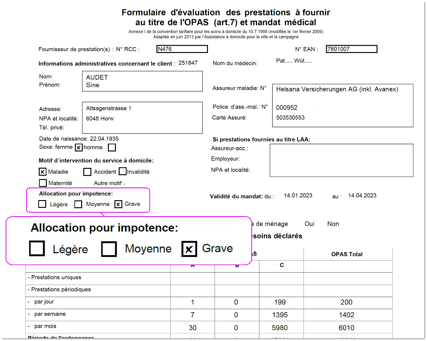 Afin de faciliter votre travail administratif, le formulaire OPAS édité avec MedLink indique désormais si le client est au bénéfice d’une API légère, moyenne ou grave.