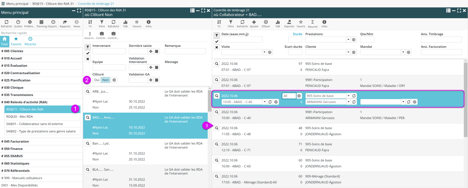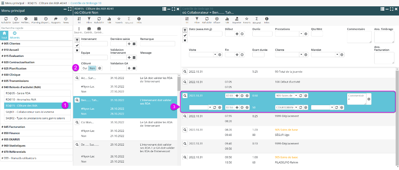 - Consulter / ajuster les RDA avec le sous-menu Contrôle de timbrage.