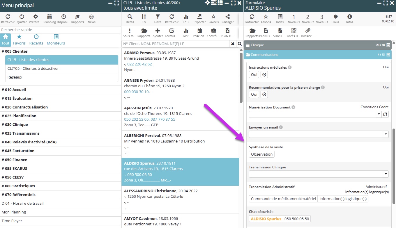 Par suite d’échanges avec plusieurs clients, l’équipe MedLink a ajusté le libellé de la question « Compte-rendu de visite ». Désormais, ce champ portera le nom « Synthèse de la visite ».