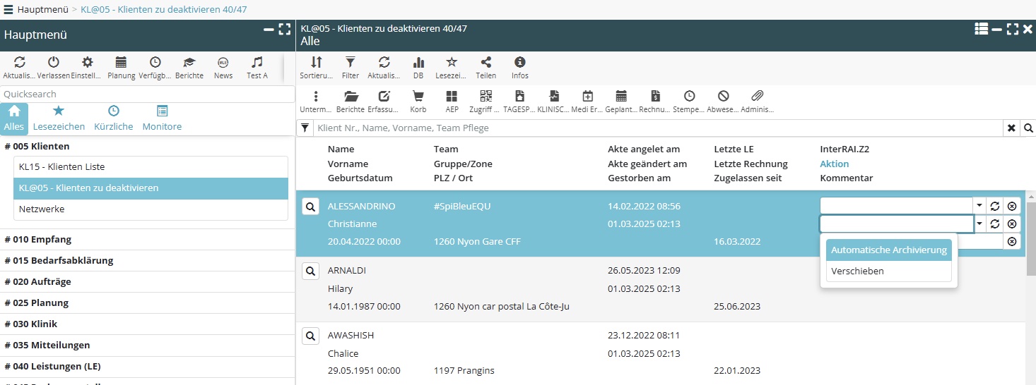 Unsere Antwort darauf? Eine neue Version, die alle Schritte der Archivierung direkt in der CL@05-Liste zusammenfasst. Sie müssen nicht mehr zwischen mehreren Fenstern navigieren: Alle Schlüsselinformationen sind auf einen Blick verfügbar, und die Archivierung erfolgt mit nur drei Klicks.