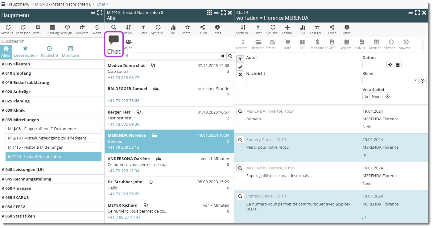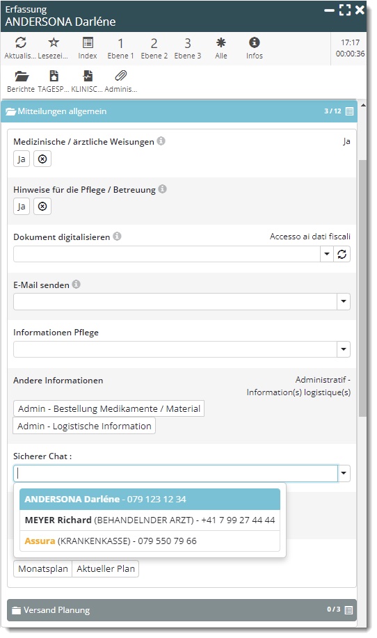 - Spitex-Mitarbeiter greifen auf die Instant-Messaging-Feeds in MedLink zu und tauschen sich mit den Klienten aus.