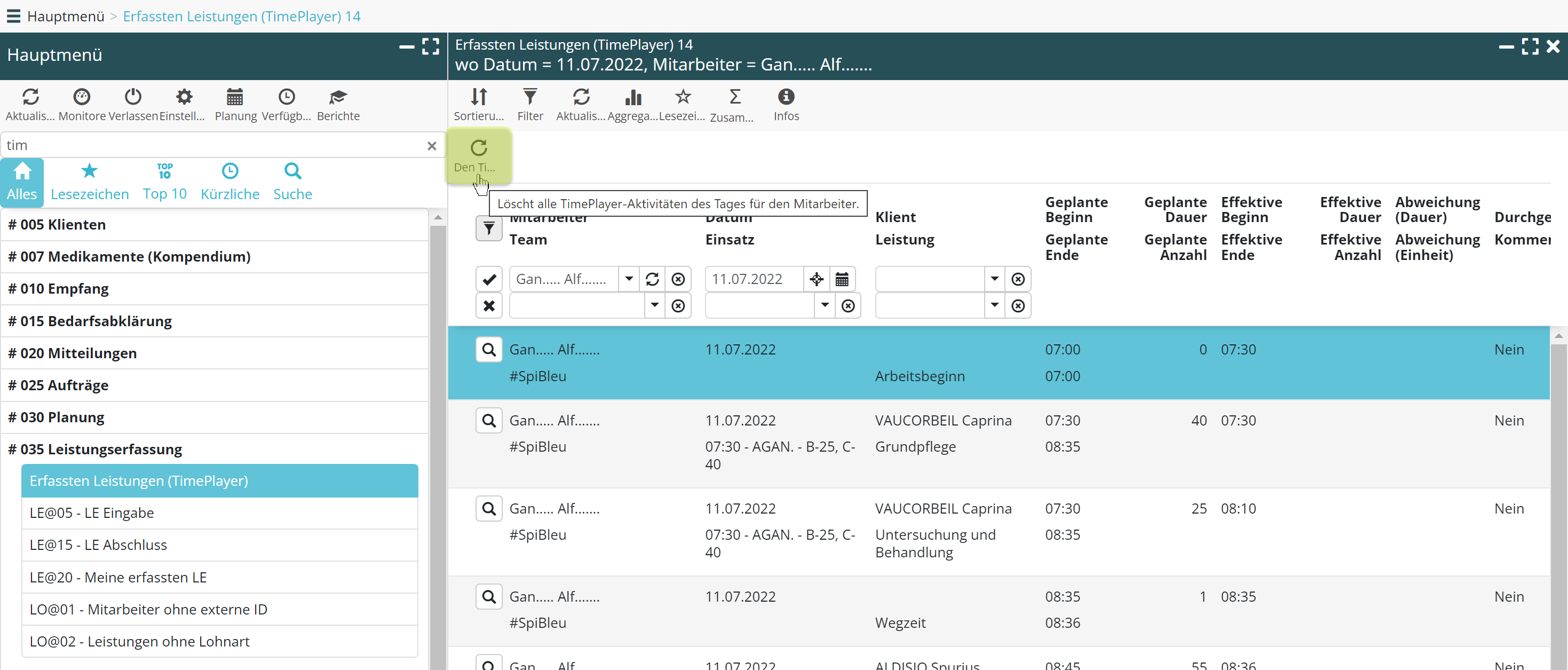 ‘Meine Planung’ ergänzt um die ‘Einsätze des Tages’ zu ersetzen
