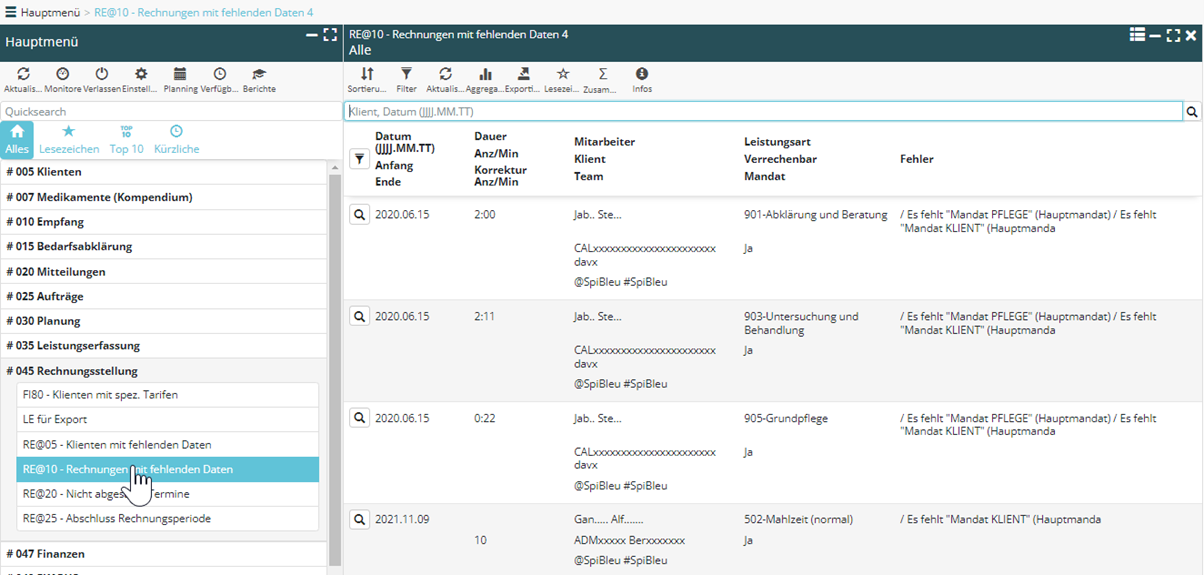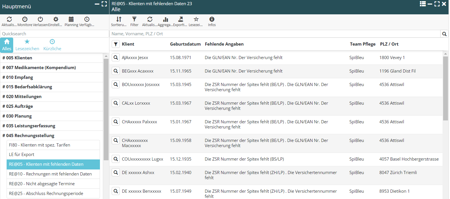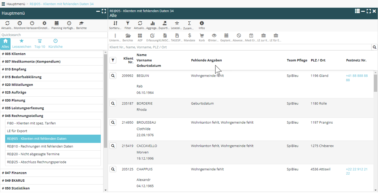 Wir vereinfachen Ihre Navigation, indem wir aus dem Menü „RE@05 – Klienten mit fehlenden Daten“ einen direkten Zugriff auf die Akte des Klienten zur Verfügung stellen.