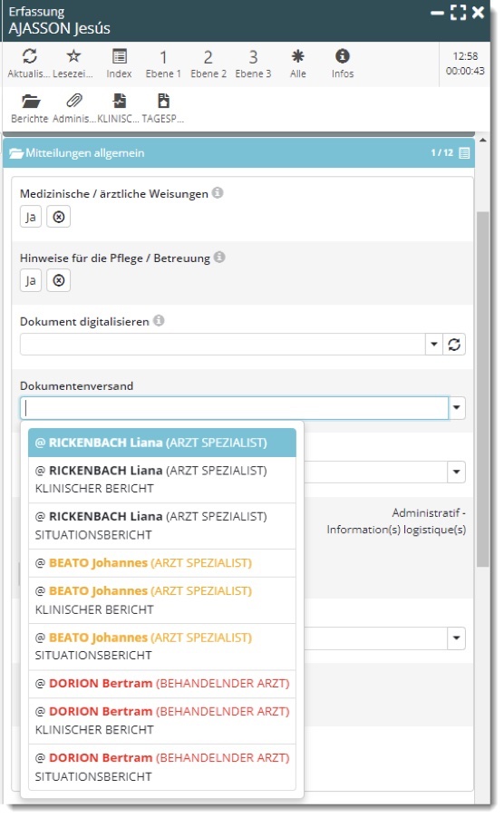- den Empfänger wählen (und einen eventuell beizufügenden Bericht).