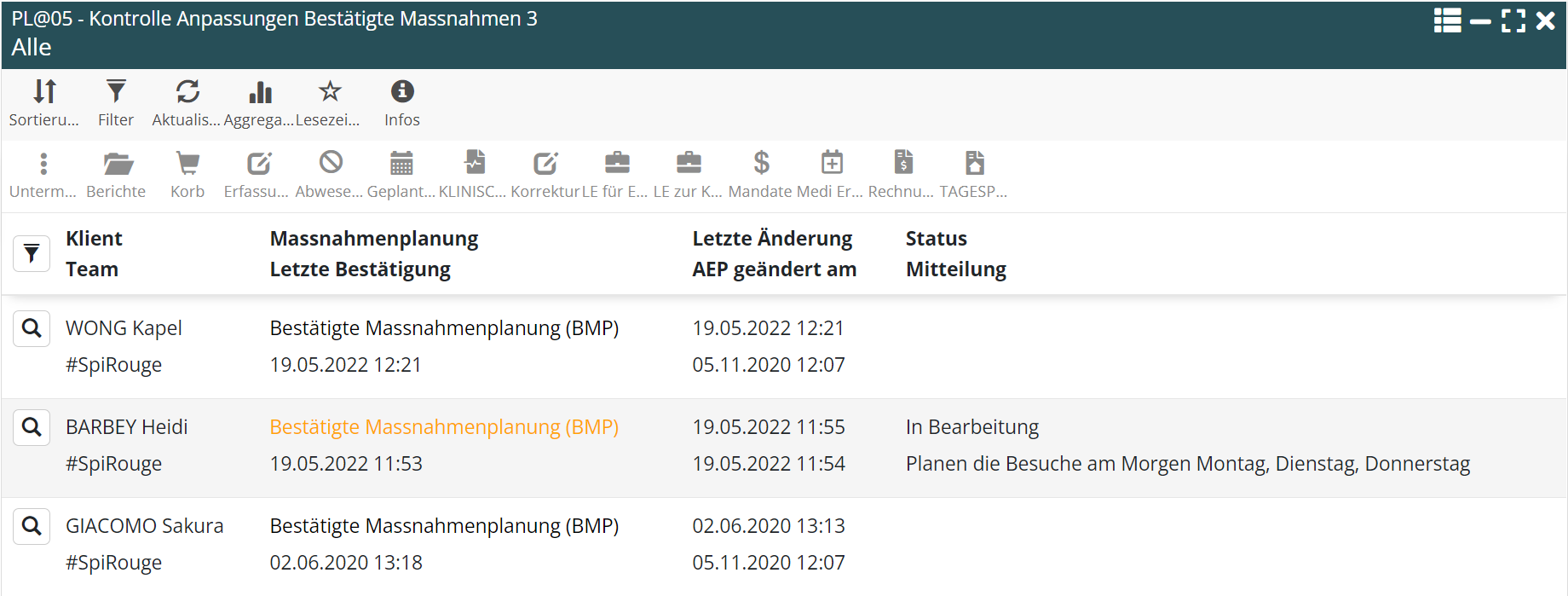 Das Menü ‚PL@05 -Kontrolle Anpassungen Bestätigte Massnahme‘ wird zu einem Werkzeug, mit dem alle Warenkorbänderungen und die daraus resultierenden Änderungen in der Besuchsplanung überprüft werden können.