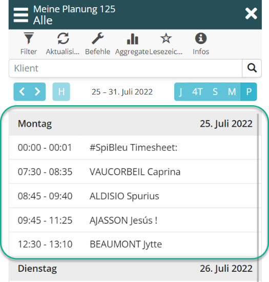 Wie können Sie auf einen Blick die Agenda der geplanten Einsätzen bei Ihren Klienten einsehen?