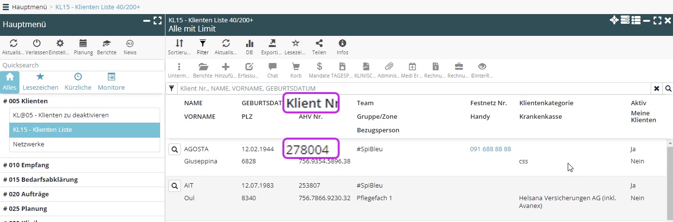Nur die Klient Nummer- eine interne Kennung in MedLink – sollte in diesen Austauschen verwendet werden.