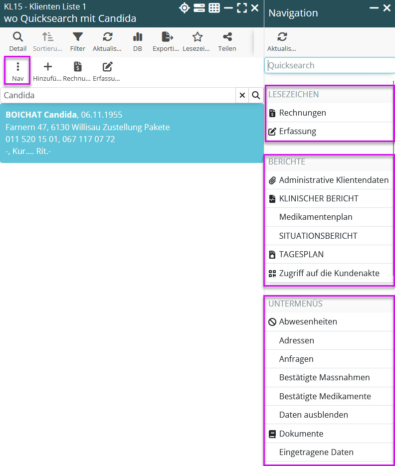Die Darstellung der Untermenüs wurde überarbeitet, um ein flüssigeres und alltagsnäheres Nutzungserlebnis zu bieten. Ergänzend zur gewohnten horizontalen Leiste mit den meistgenutzten Tools und ihren Icons erscheint nun die neue Schaltfläche „Navigation“.