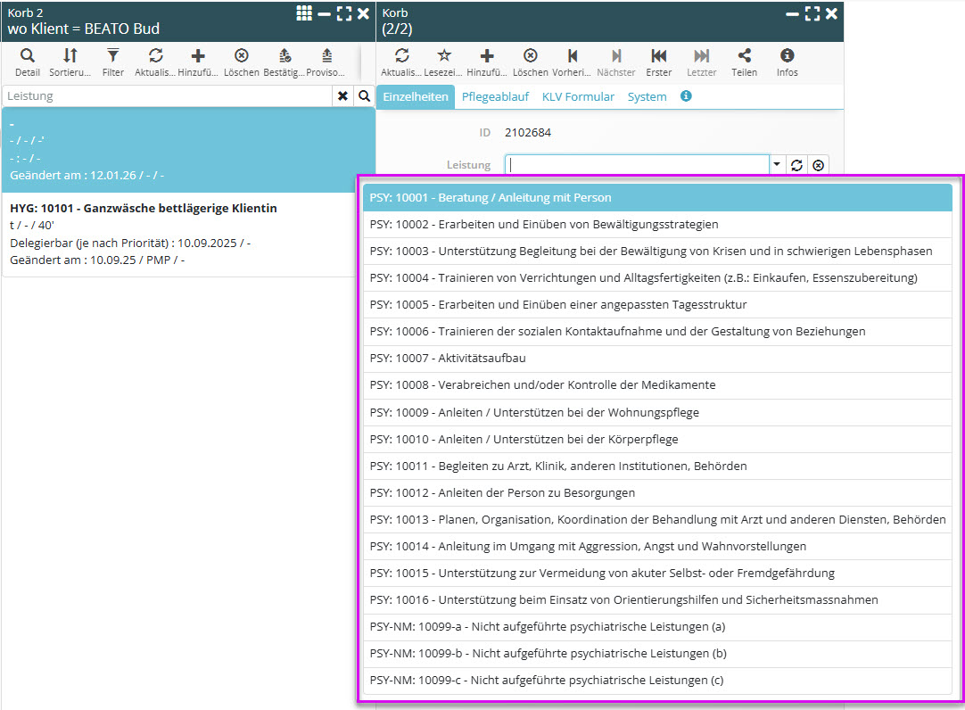 ✔️ Sie ersetzen automatisch die generischen Leistungen 901 / 903 / 905, wenn spezifische psychiatrische Leistungen (Präfix PSY) vorgesehen sind.