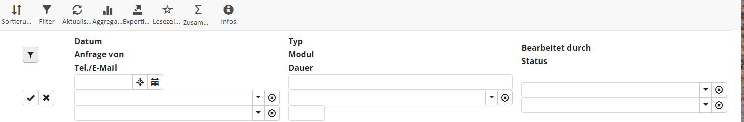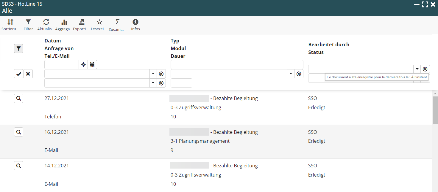 Die angebotenen Filteroptionen ermöglichen es Ihnen, zudem schnell die benötigten Informationen zu finden, insbesondere den Namen der Person, die sich an unseren Support gewandt hat.
