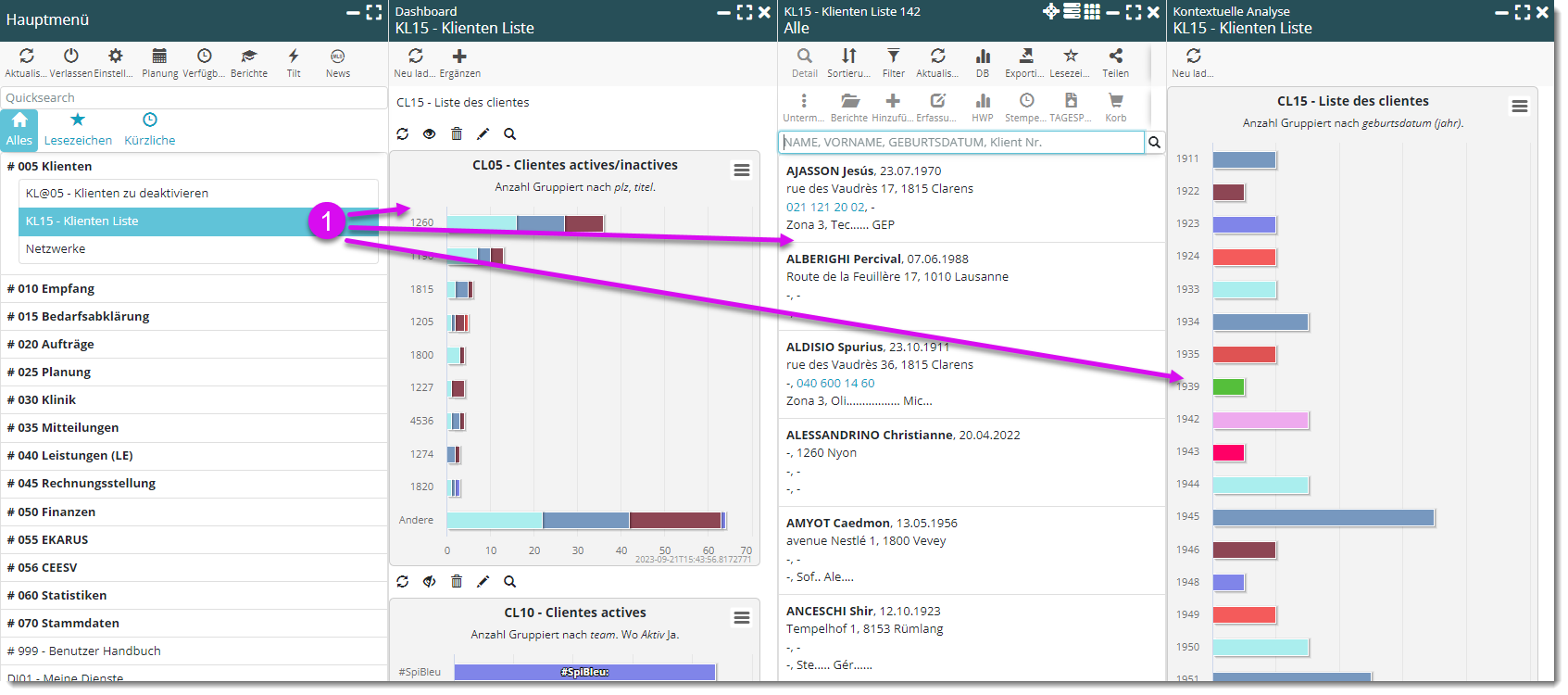Diese Lernfähigkeit wurde auf die Dashboards ausgeweitet: Wenn Sie sich nun dafür entschieden haben, die mit einer Liste verbundenen Tabellen zu öffnen (Monitorgraphen auf der linken Seite der Liste und Kontextanalysegraphen auf der rechten Seite), speichert das System die Einstellung und öffnet die Grafiken, die Sie offen gelassen haben, erneut, wenn Sie das nächste Mal zur Liste zurückkehren.