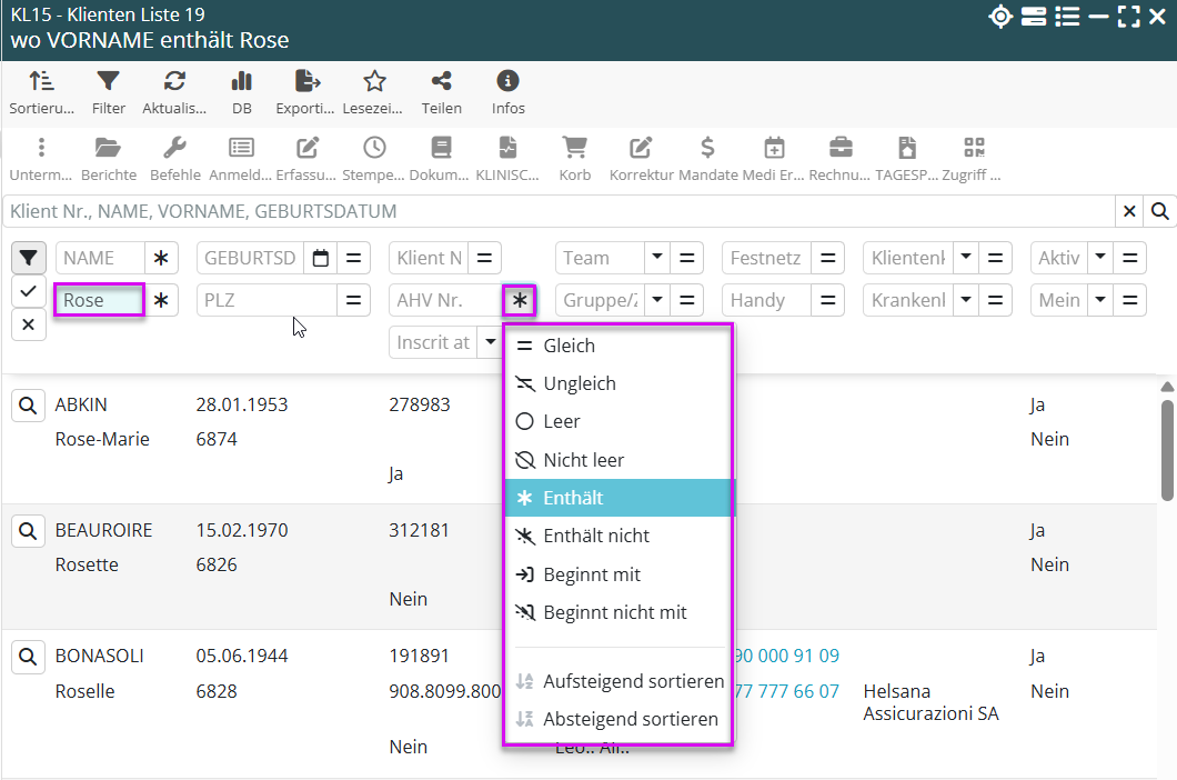 🔎 Direktzugriff auf Filter und Sortierungen aus den Listen