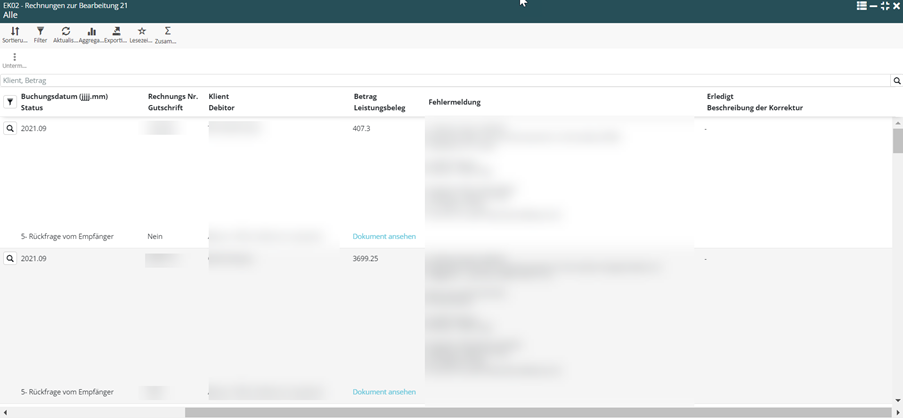 Im Listenmodus wurden die Informationen nach Themen gruppiert, was Folgendes bewirkt hat: