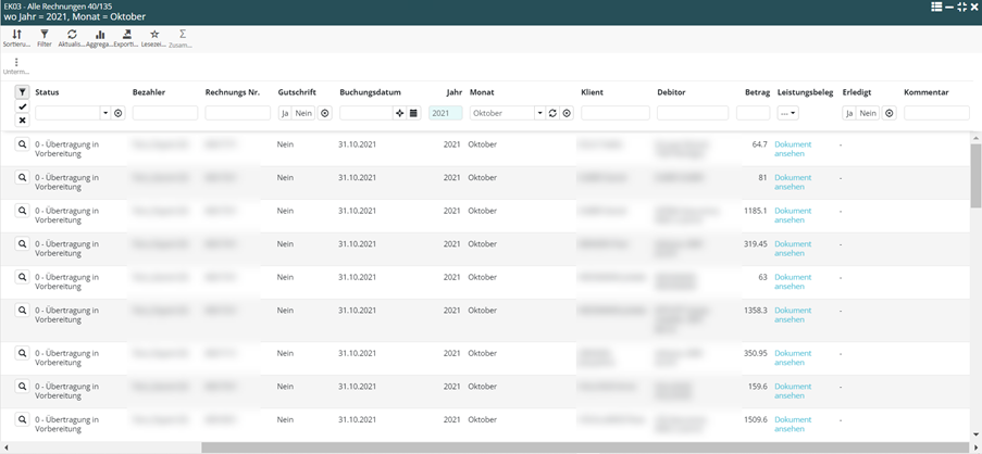 - Die Anzahl der Spalten wurde deutlich reduzieren