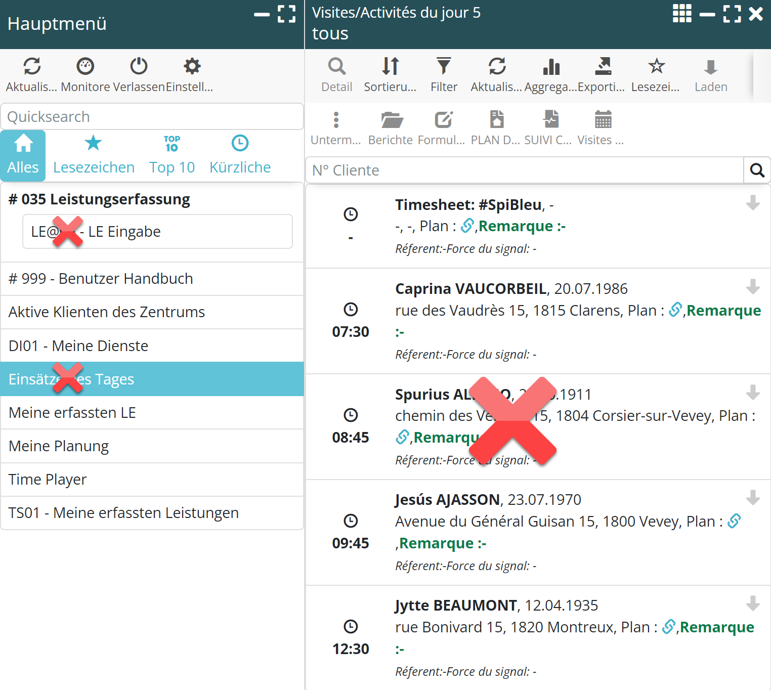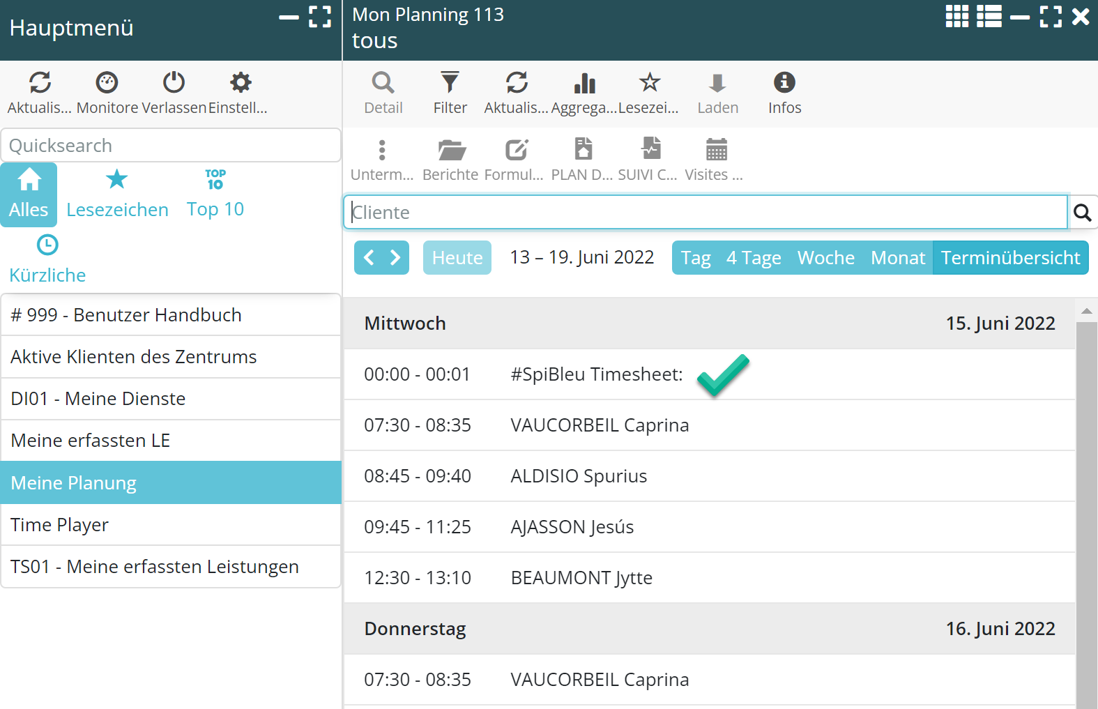 ‘Meine Planung’ wird zu 100% einsatzbereit und kann das Menü ‘Einsätze des Tages’ ersetzen.