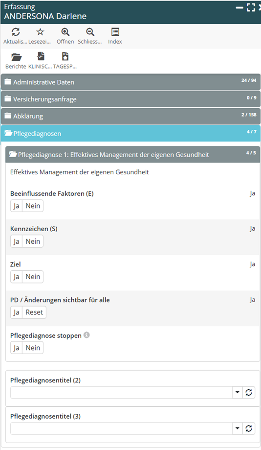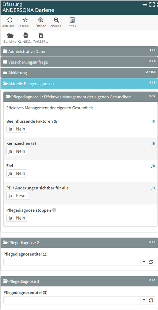 Zusammenfassen der Pflegediagnose-Formulare in einem eigenen Pflegediagnose-Block