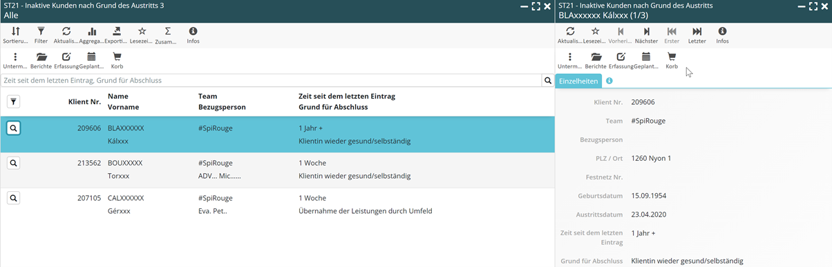 - ST21 – Inaktive Kunden nach Grund des Austritts