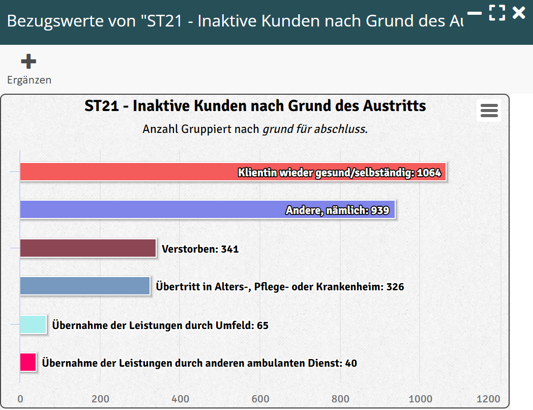 Zwei Statistiken stehen zur Verfügung, die Aufschluss darüber geben, durch welchen Kanal Klienten zu Ihrer Spitex-Organisation stossen und auch aus welchem Grund sie diese wieder verlassen: