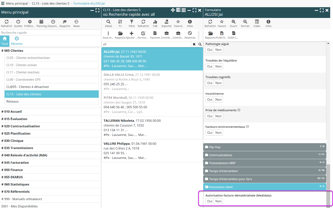 Une nouvelle entrée dans le bloc Facturation du formulaire du client permet d’activer le service pour le client et ses garants.