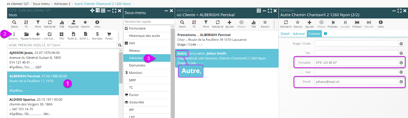 Dans le cas où le payeur est un garant, son adresse mail et numéro de portable doivent être renseignés dans une adresse de type AUTRE, comme illustré ci-après :