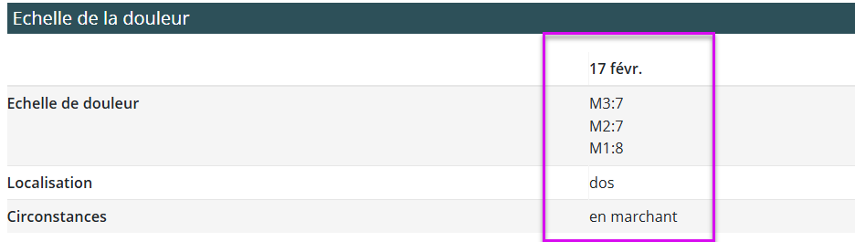 Les valeurs de douleur ne sont plus uniquement affichées dans le rapport Situation du client.