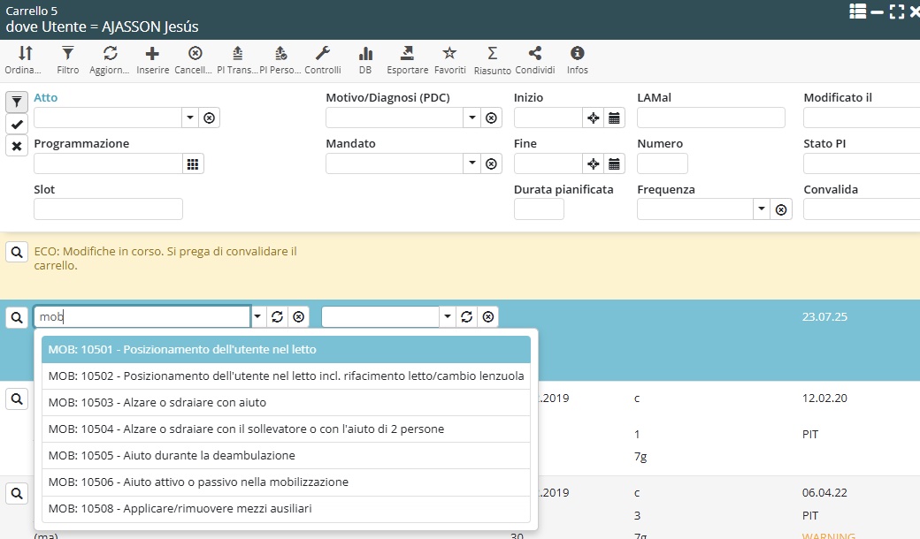 Questo riferimento visivo permette all’operatore sanitario di organizzare meglio le prestazioni scelte e di verificare rapidamente la coerenza della selezione con le esigenze del paziente. L’acronimo del dominio di cura è visibile esclusivamente nel carrello.