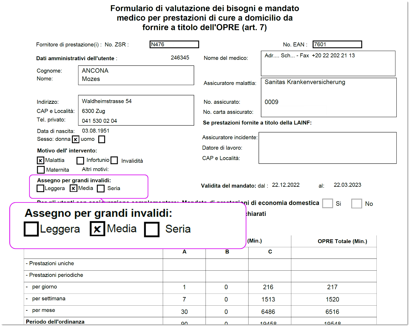 Per facilitare il lavoro amministrativo, il modulo OPre pubblicato con MedLink indica ora se l’assistito riceve un Assegno per grandi invalidi leggera, media o seria.