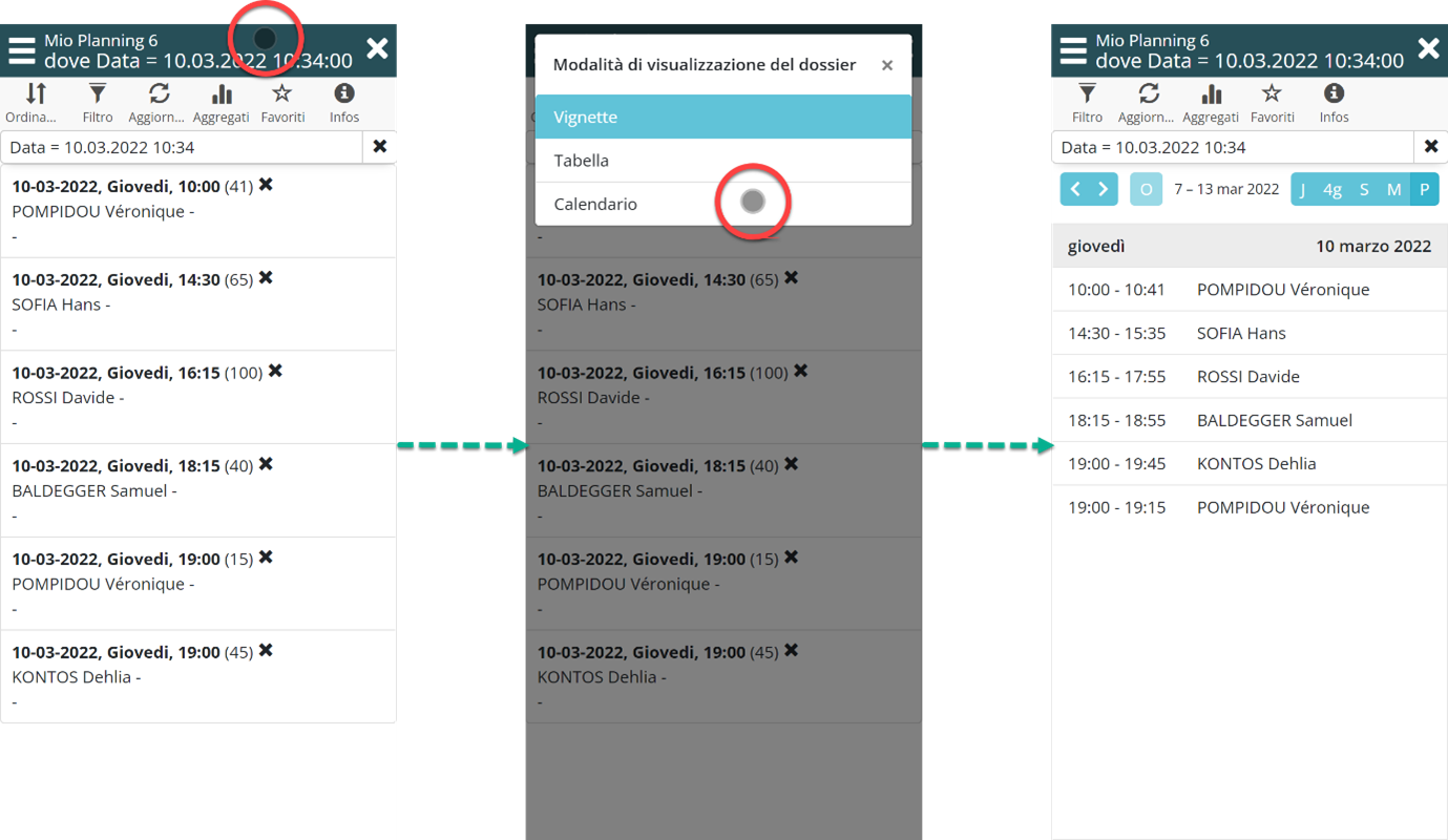 Desiderate consultare il Vostro Planning. È aperto in modalità vignetta e voi preferite visualizzarlo in modalità calendario. Come procedere sul vostro smartphone?