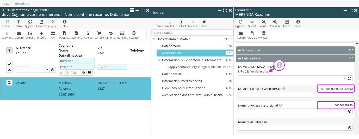 Una volta completato l’abbinamento, non resta che confermare l’assicurazione dell’utente nel dossier amministrativo: