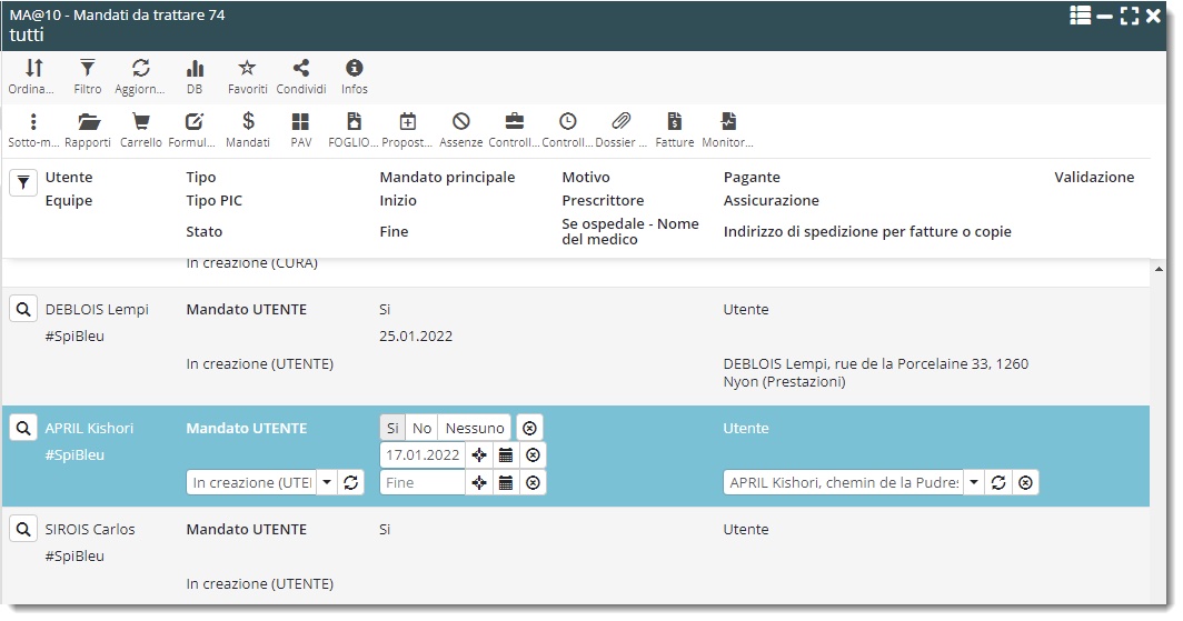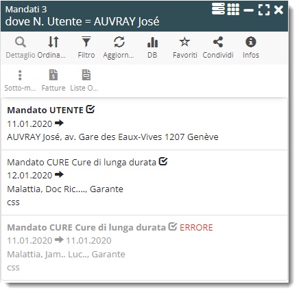 Per facilitare la lettura delle liste di mandati, la presentazione del sottomenu “ $ Mandati ” nel file del cliente è allineata con l’elenco MA10@Mandati da trattare.