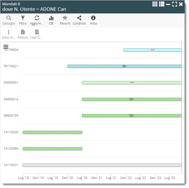 - Poi i mandati scaduti (in grigio), con lo stesso sottoordinamento,