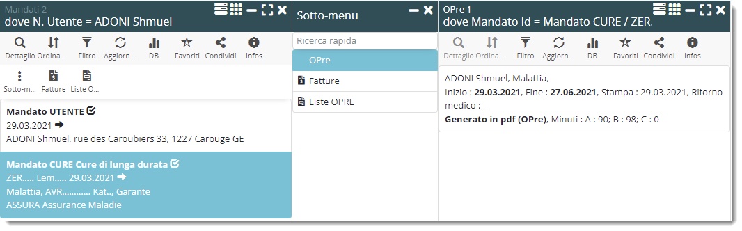Per una navigazione semplificata e per agevolare le operazioni di correzione, dal mandato sono visibili i sottomenù OPre e Fatture: