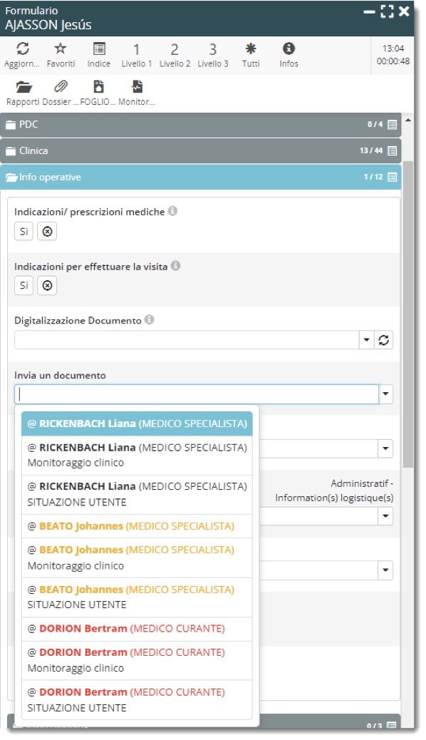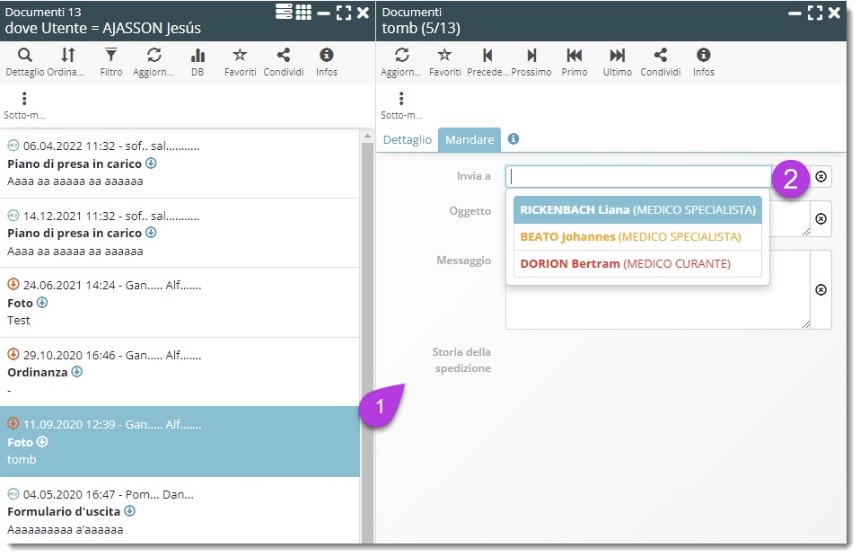 Gli stessi codici colore e lo stesso sistema di attivazione automatica dell’accesso si applicano quando si vuole inoltrare un documento, come la foto di una ferita qui sotto: