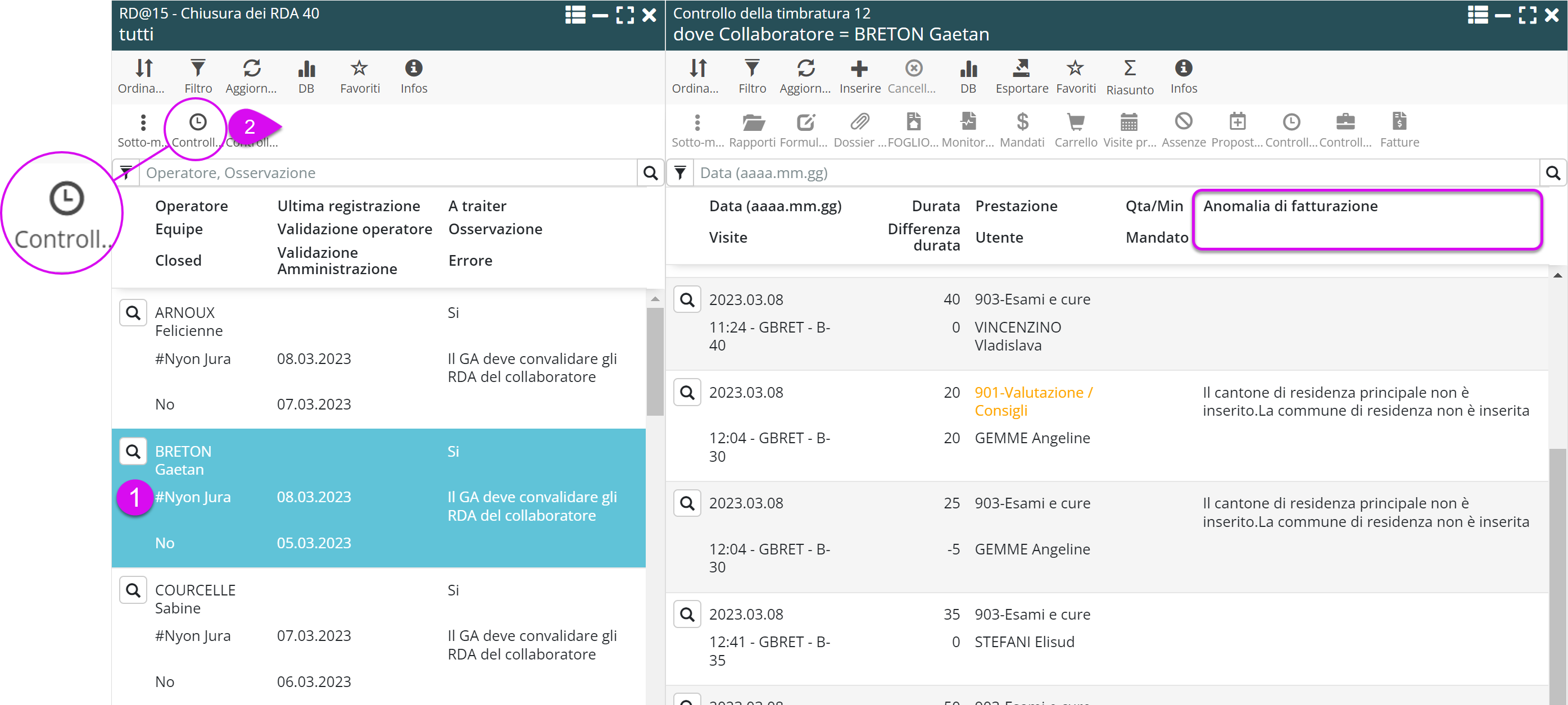Il menu Controllo timbrature presentava in precedenza due tipi di anomalie: timbratura e fatturazione.