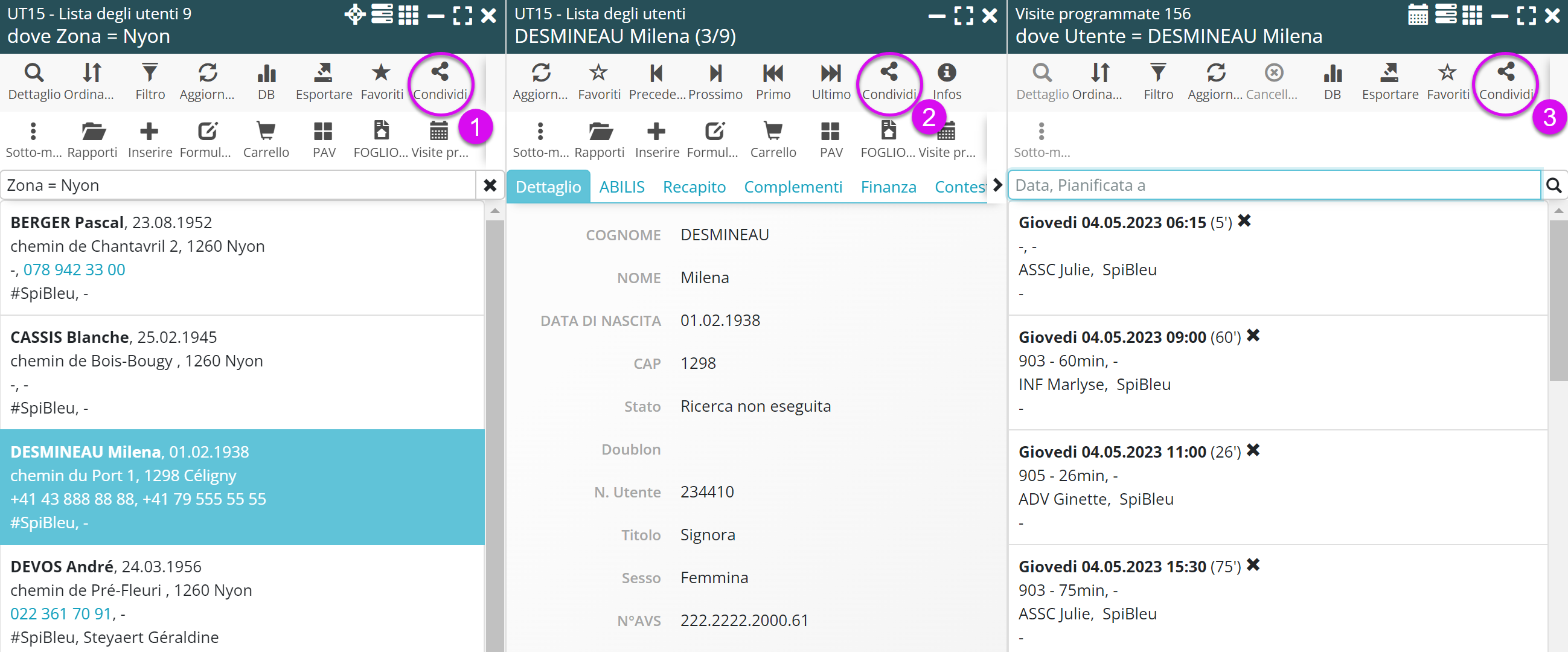 Condivisione delle visite programmate per il sig. DESMINEAU.