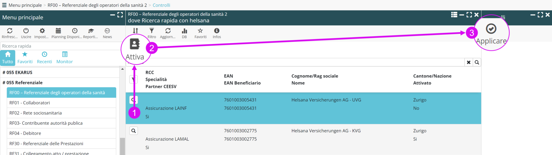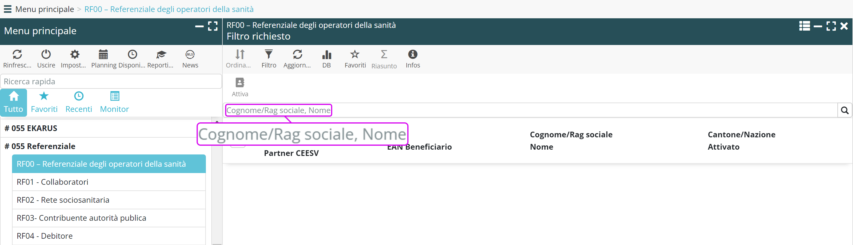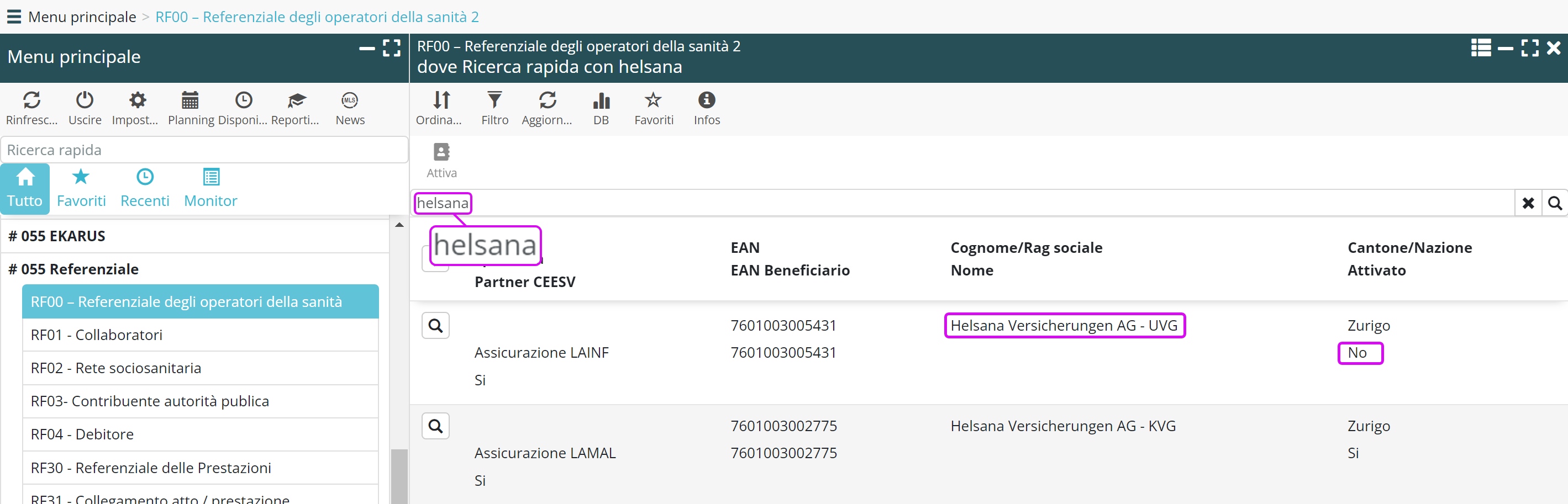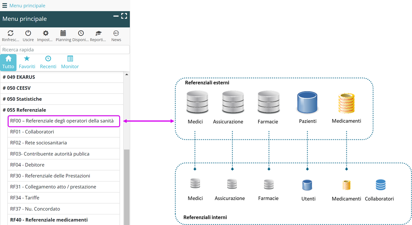 Per facilitare la lettura del referenziale degli operatori sanitari e risparmiare tempo nelle ricerche, abbiamo rivisto l’ergonomia dei menu Referenziale degli operatori della sanità (RF00) e Rete sociosanitaria (RF02).