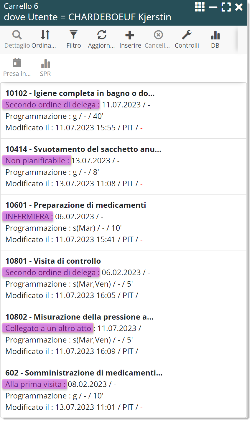 Ad oggi, era necessario selezionare una competenza per ogni atto, con la necessità, in caso di alternanza, di duplicare gli atti – ad esempio, una medicazione effettuata una volta alla settimana dall’infermiere e il resto del tempo da un OSS -. Oltre alla macchinosità della duplicazione, la documentazione prodotta (Foglio di consegna e Opre) è più difficile da leggere.