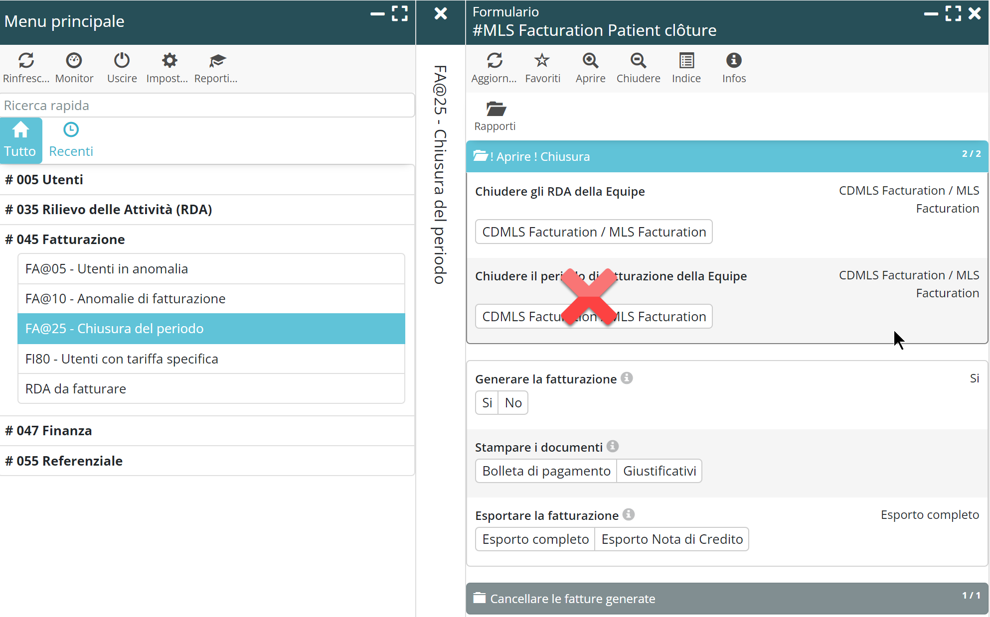 - La presenza di anomalie di fatturazione viene visualizzata in un messaggio di controllo.
