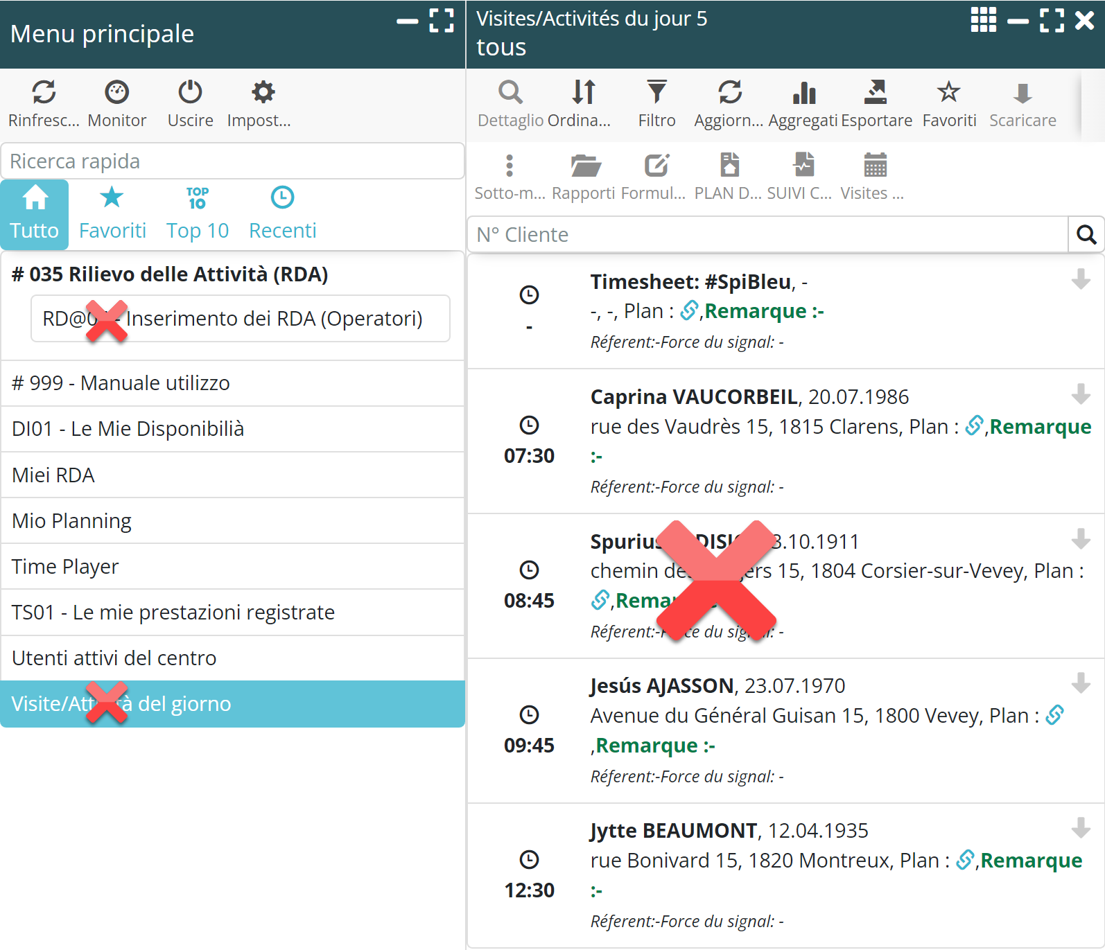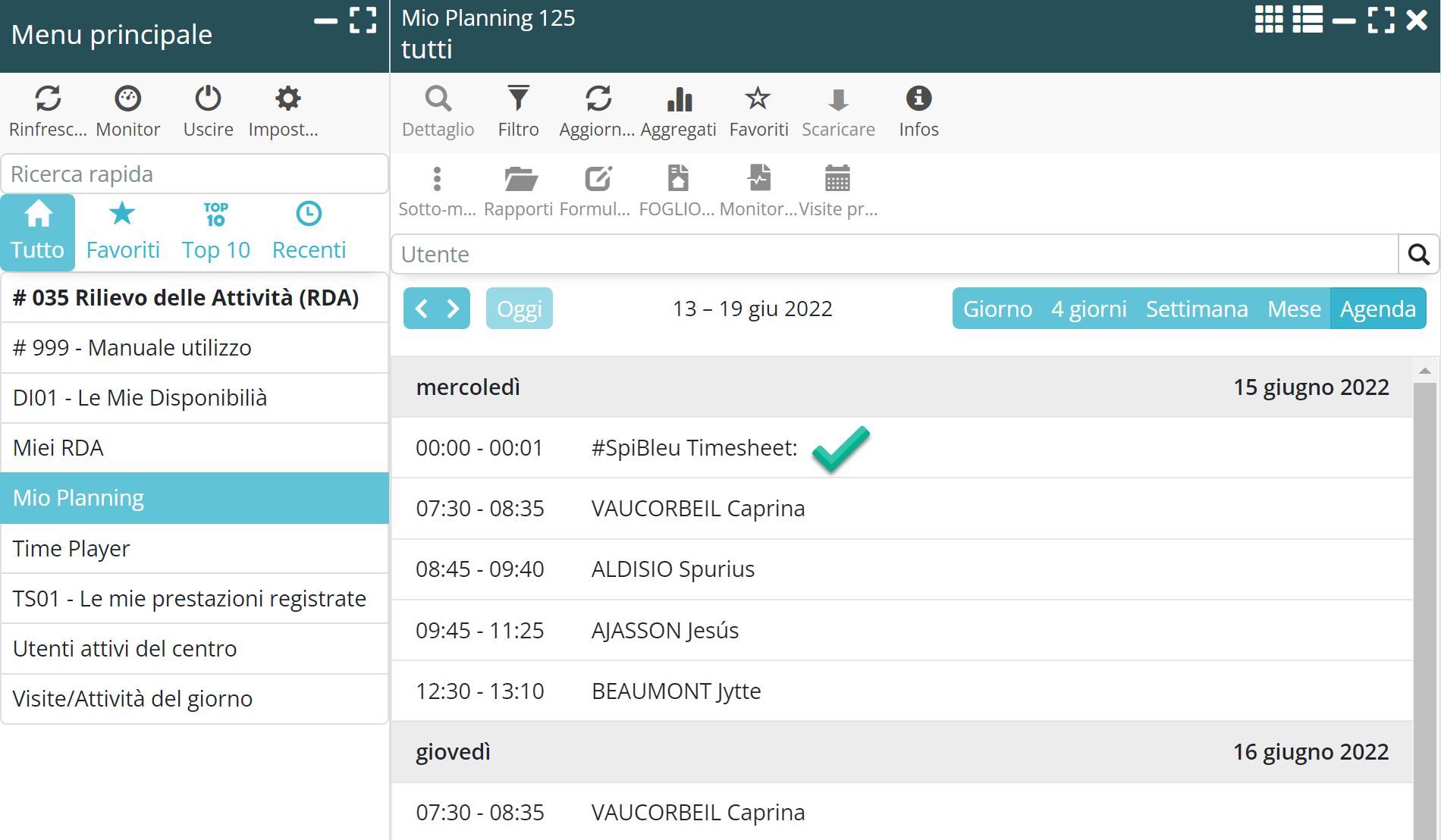 - Mio Planning, con la sua modalità di presentazione del calendario, sostituisce vantaggiosamente Visite/Attività del giorno.