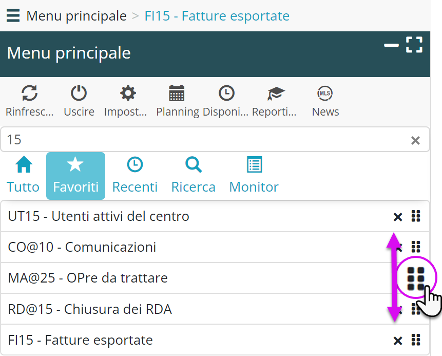 Ordinare i favoriti in base alle proprie preferenze. Il sistema memorizza l’ordine desiderato.