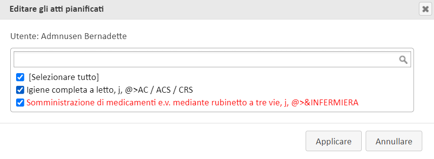 Le procedure interessate saranno quindi visualizzate in rosso nella sezione “Editare gli atti pianificati” della visita, permettendovi d’identificarle facilmente.