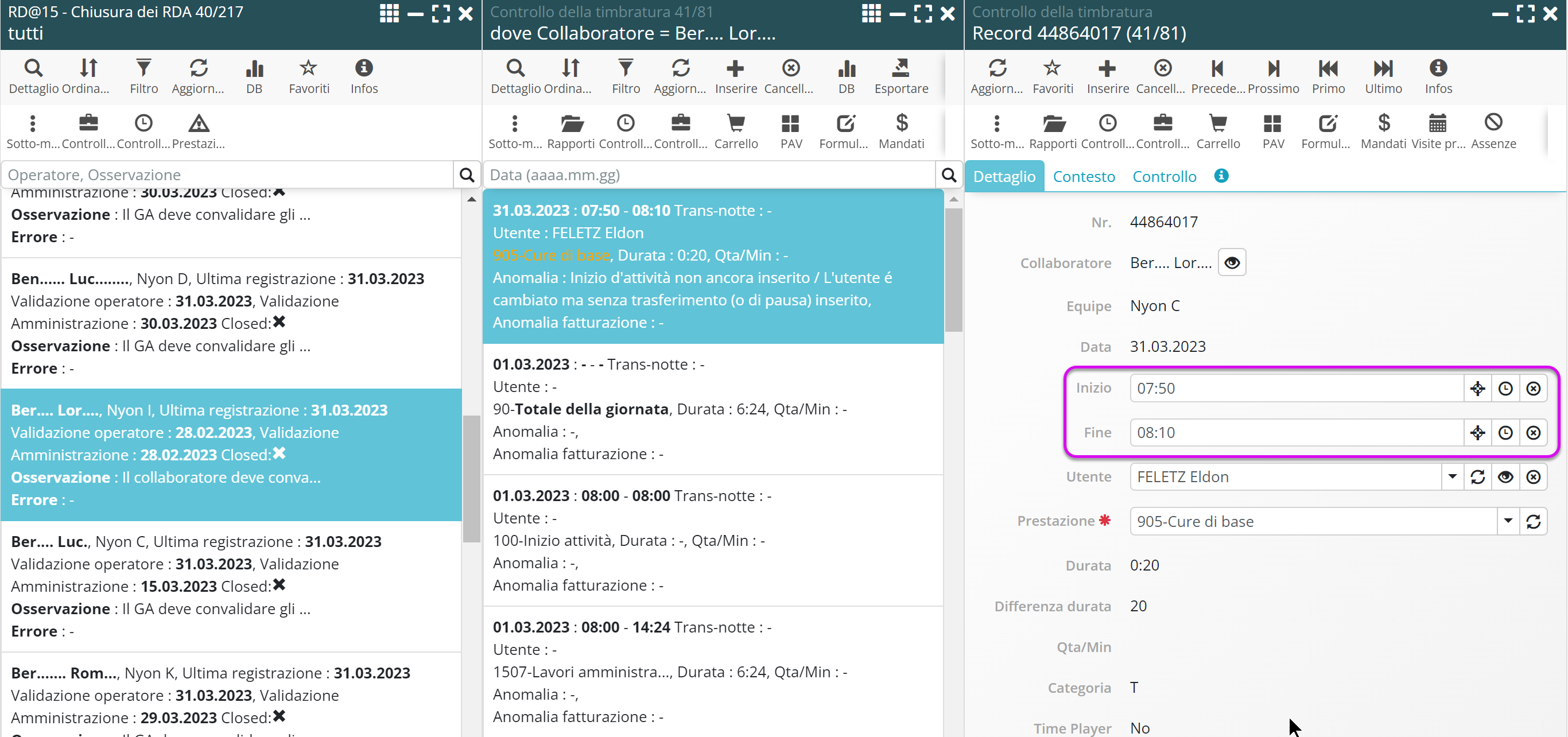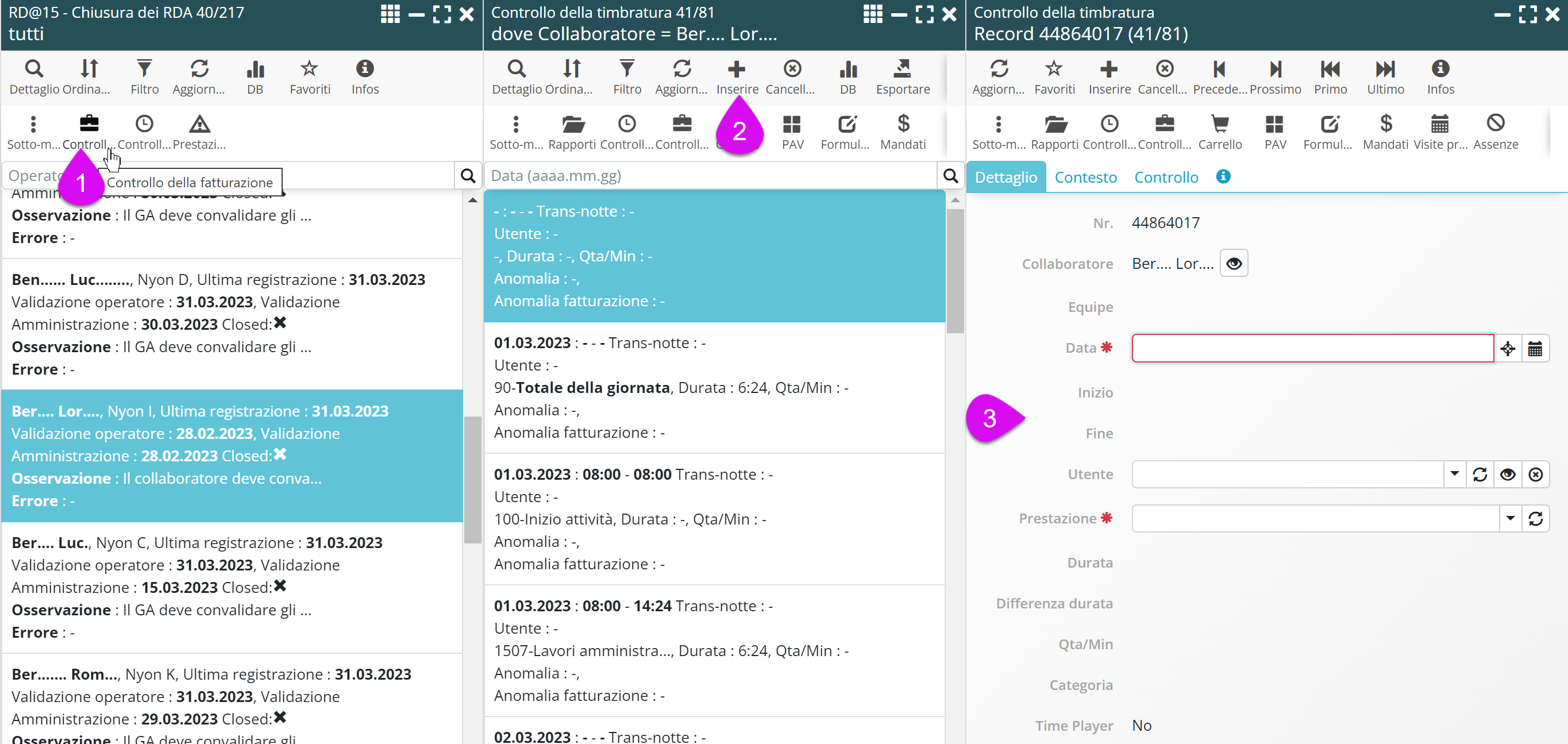 Per semplificare questo processo, è ora possibile effettuare le aggiunte direttamente dalla lista Controllo Timbrature nel sottomenu del collaboratore, con il grande vantaggio di avere una visione globale degli RDA del collaboratore.