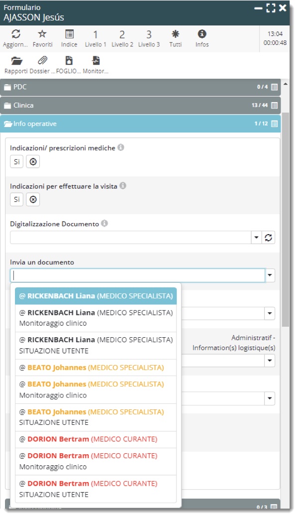 Basta andare nella sezione Comunicazioni del formulario dell’utente e selezionare il destinatario e, se del caso, allegare il rapporto.