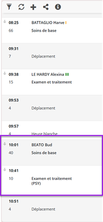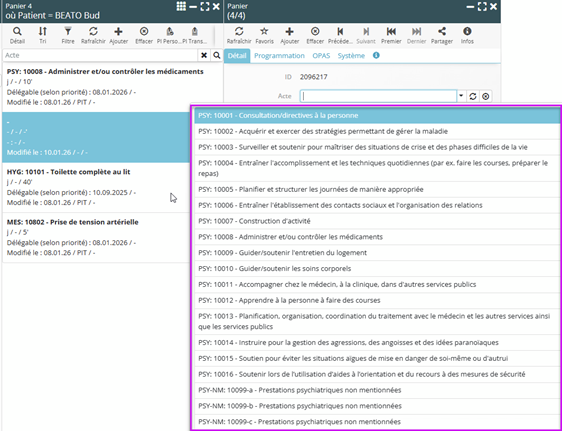 Dans le cadre de l’utilisation du TimePlayer, la planification d’actes de type psychiatrique dans la prise en charge d’un client entraîne la mise à disposition automatique des prestations psychiatriques (PSY) correspondantes pour le timbrage du collaborateur.