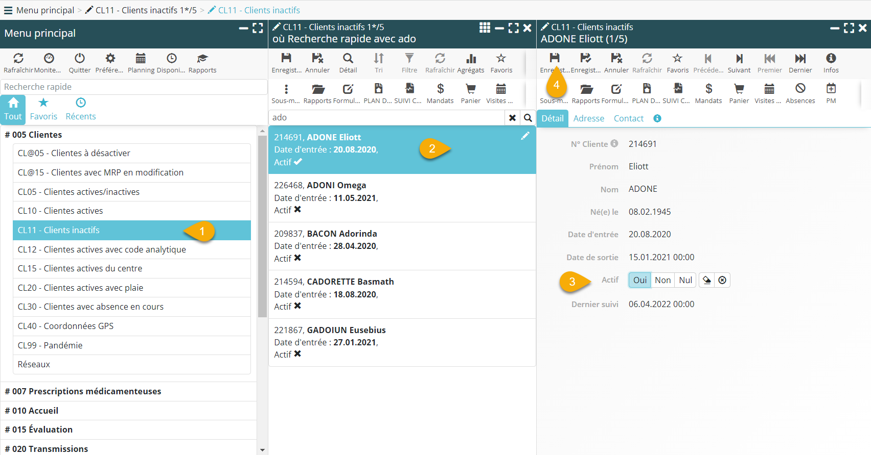 La dernière étape de ce projet de simplification des menus Clients est programmée le 21 décembre 22, où les listes CL05, CL10, CL11 et CL40 seront supprimées du menu principal.