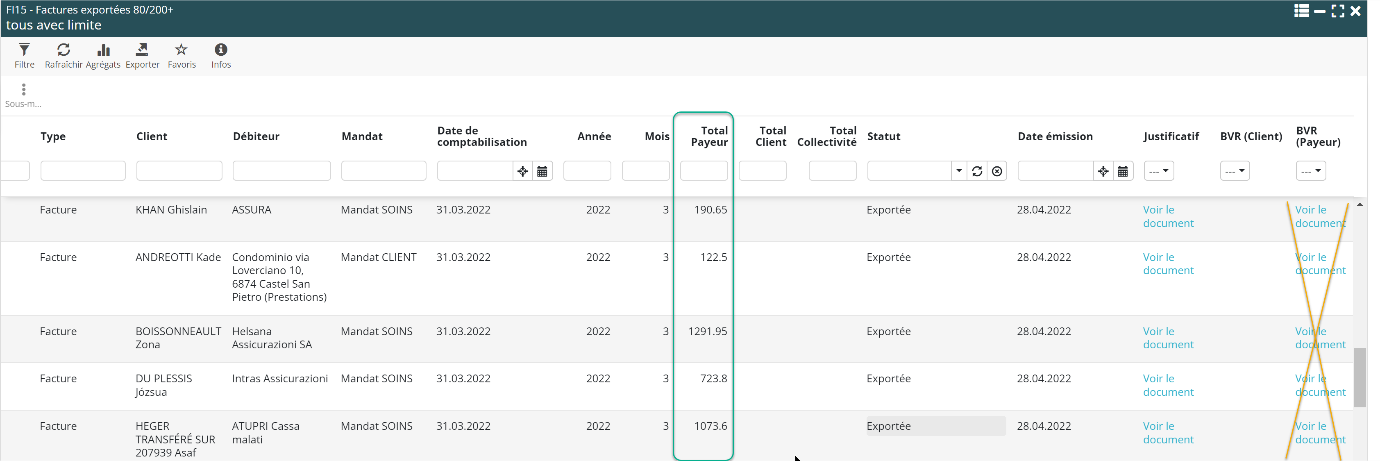 Simplification de la liste des factures exportées