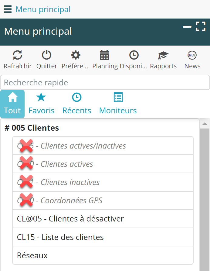 La dernière étape de ce projet de simplification des menus Clients est programmée le 21 décembre 22, où les listes CL05, CL10, CL11 et CL40 seront supprimées du menu principal.