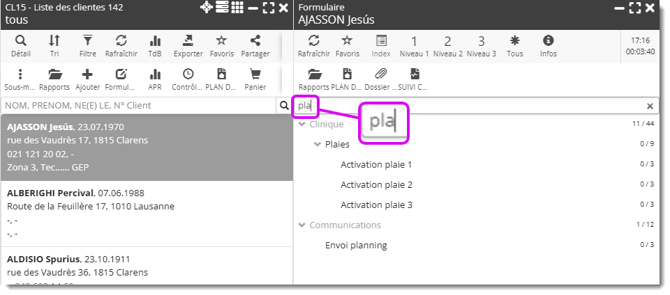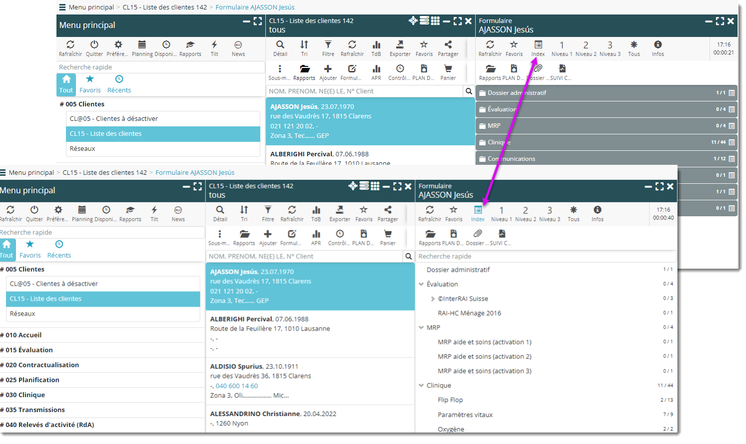 - Un clic dans l’index ouvre le formulaire sur la rubrique choisie en haut de la lame.