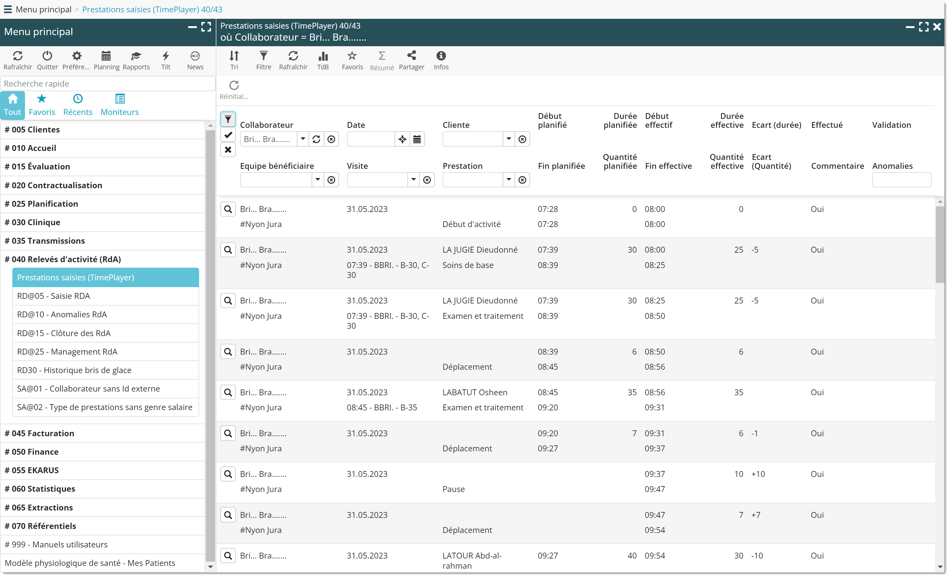 La liste des prestations saisies s’allège. Jusqu’à présent, la liste présentait les lignes de prestations de tous les collaborateurs n’ayant pas encore validé la journée, qu’ils l’aient démarrée ou non.