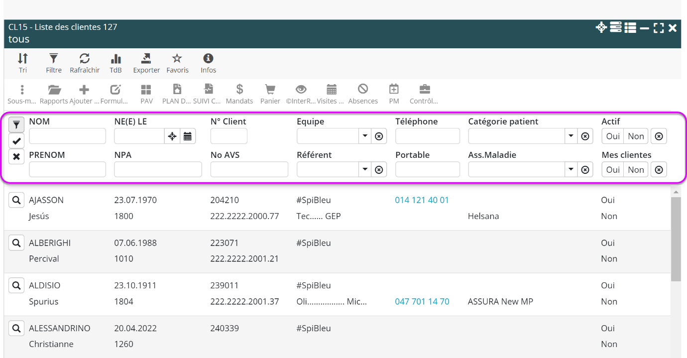 Pour faciliter l’utilisation des filtres en mode tabulaire, les noms des champs alternent désormais avec la valeur à rechercher.